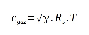 Où γ est le rapport entre les capacités thermiques isobare et isochore du gaz, Rs la constante spécifique des gaz parfaits et T la température (en kelvin).