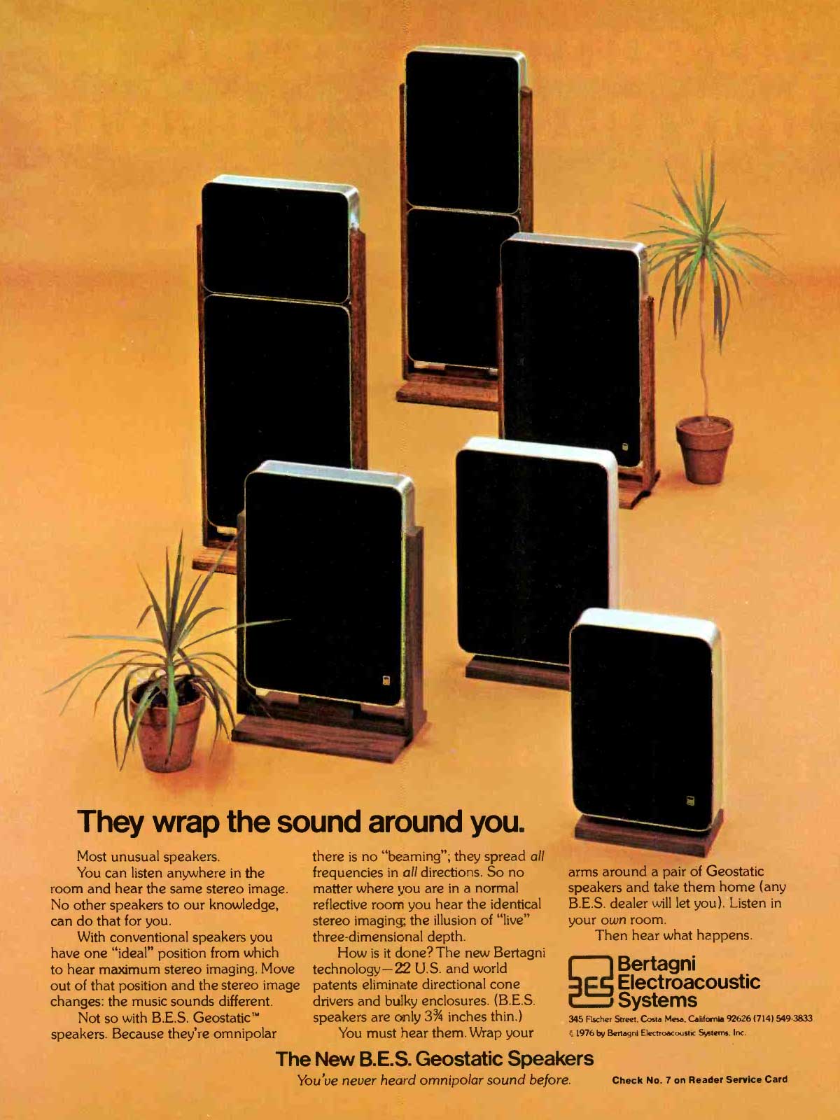 Hélas, la situation politique n’étant guère plus stable en Argentine qu’au San Theodoros, Bertagni dû s’exiler quelques mois plus tard pour fuir la répression contre les intellectuels des sbires de José López Rega (2). C’est en Californie à Costa Mesa que Bertagni s’installa avec sa famille, où, ne pouvant enseigner il créa en 1975 une entreprise dans le domaine de l’audio, Bertagni Electroacoustic Systems (BES).