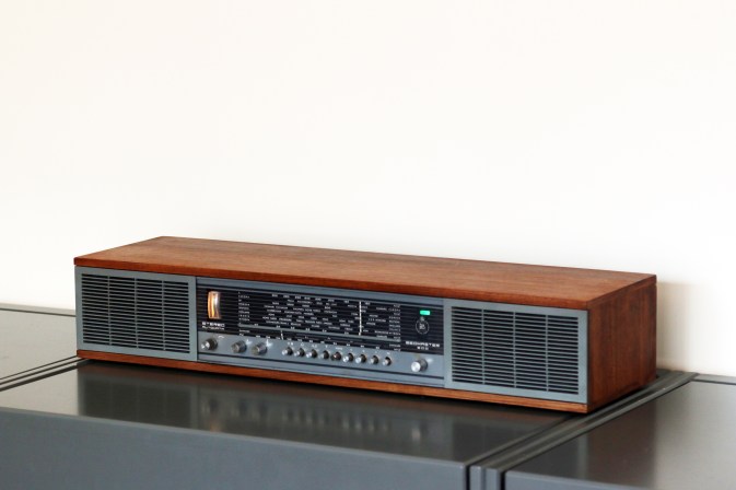 A l’usage, le 900k n’est pas désagréable du tout. Certes il ne faut pas s’attendre à une écoute hi-fi mais le résultat est très correct, bien supérieur par exemple à la radio Tivoli qui est dans l’office de Moulinsart. Le bas médium (on imagine bien que compte tenu de la taille des HP il n’y a pas de grave) est un peu monolithique et on n’a pas non plus vraiment d’aigu. Mais l’ensemble est quand même assez équilibré. Avec un appareil aussi étroit – 75cm – la perspective sonore en stéréo est assez limitée et par ailleurs très sensible au positionnement de l’auditeur. On dispose d’une entrée-sortie pour un magnétophone et d’une entrée ligne (identifiée comme phono mais sans correction RIAA) qui peut permettre par exemple de mettre un récepteur bluetooth.