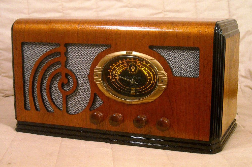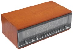 Comme il n’y a pas que la haute-fidélité dans la vie, nous allons nous intéresser aujourd’hui à un autre domaine de l’audio à savoir la radio. Longtemps le poste de radio a été la principale source sonore de la maison conjointement avec l’électrophone. Le poste de radio est alors un objet assez encombrant pour permettre le refroidissement de son électronique à tubes. En contrepartie, les modèles les plus luxueux permettent aux ébénistes de s’en donner à cœur joie pour agrémenter l’apparence de ces gros engins. Cette radio a un son plutôt médiocre mais les disques 78t de l’époque ne sont guère meilleurs. Au début des années 50, les phonogrammes s’améliorent avec le microsillon sur vinyle mais la radio n’est pas en reste grâce à la modulation de fréquence.