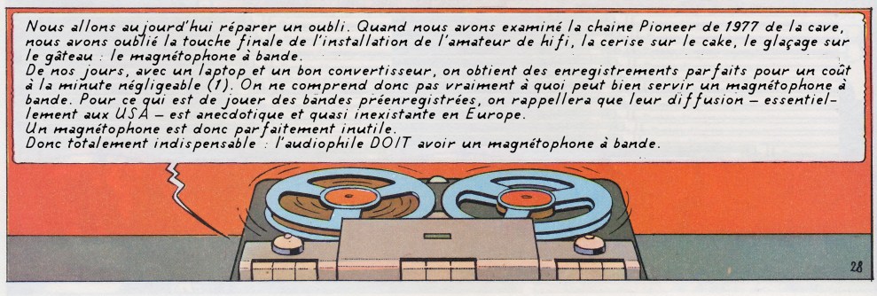 C’est peu dire que l’objet que nous remontons de la cave de Moulinsart aujourd’hui est exceptionnel. Exceptionnel par sa taille, sa rareté et surtout son âge. Cet âge vénérable, plus de 70 ans, mérite bien que l’on aborde le sujet par un aperçu historique. La stéréophonie qui arrive sur le marché en 1958, n’est pas précédée par la monophonie. Tout comme l’expression « vélo musculaire » ne remplace le vélo qu’à l’avènement du vélo à assistance électrique, avant la stéréophonie, il n’y avait que la haute-fidélité. Mais les préoccupations des audiophiles étaient déjà les mêmes que de nos jours : réduction de la distorsion et du bruit, justesse des timbres, respect de la dynamique et étendue de la bande passante…