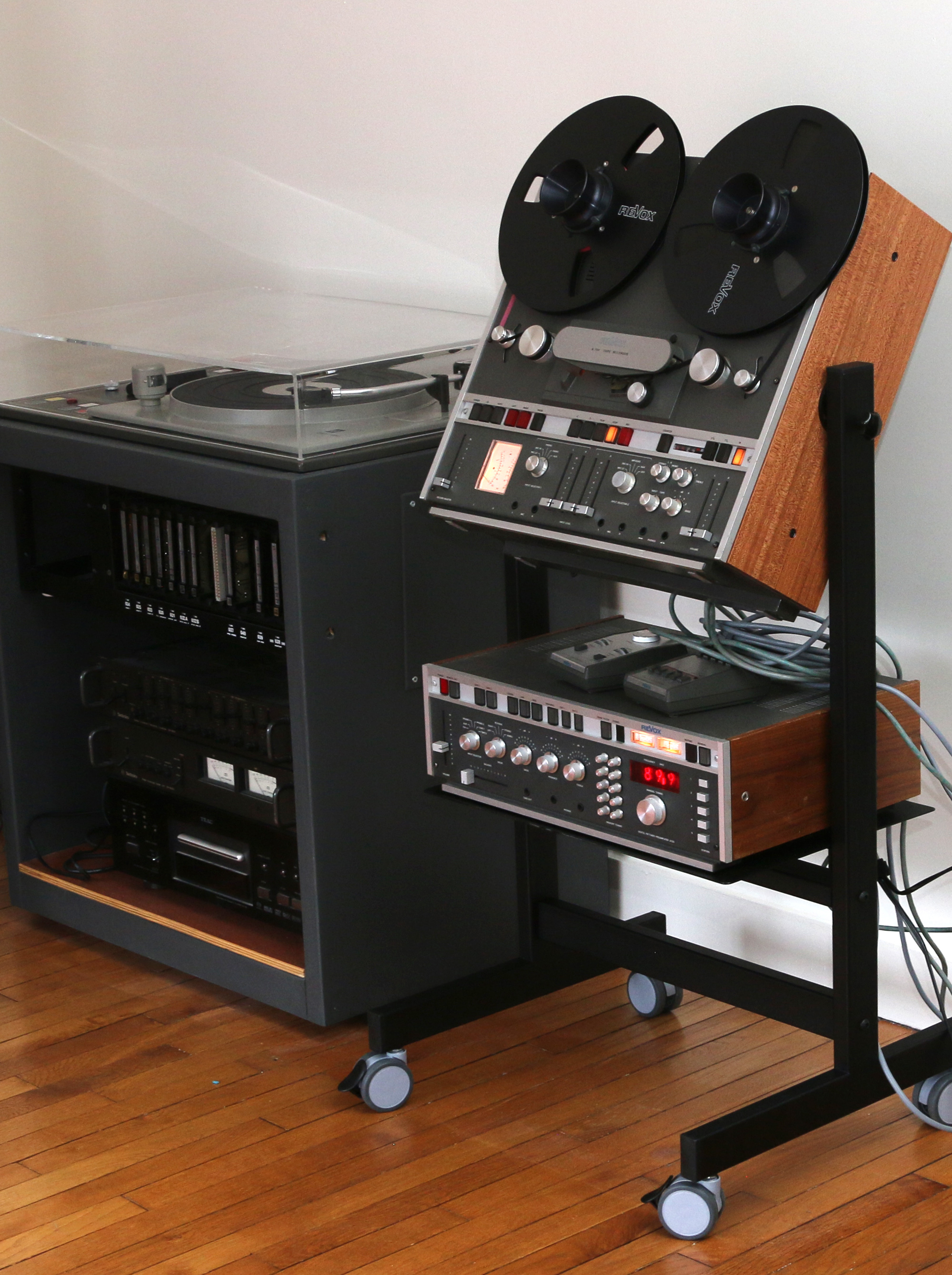 Dans la pandémie de retour vers l’analogique, le magnétophone à bande est le stade ultime de la contamination. La vision hypnotique des bobines lors de l’écoute d’un bon enregistrement est un plaisir sans équivalent. Un des problèmes du magnétophone est cependant de savoir ou le mettre. Les modèles pour amateur sont généralement prévus pour être posés verticalement mais ce n’est guère ergonomique. Ils sont de plus en général trop haut pour être utilisés confortablement horizontalement de fait de l’électronique sous le bloc de transport (sauf les Revox G36, A77 et B77 assez compact). La disposition sur trolley, comme les modèles professionnels est la plus pratique mais elle peut être compliquée et coûteuse.